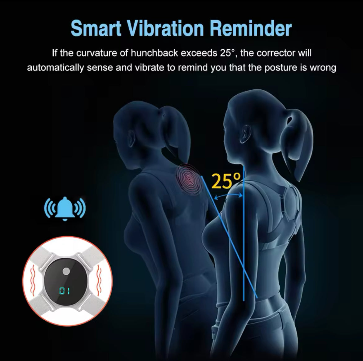 The device uses smart sensor technology to detect slouching or poor posture. When you begin to hunch, it gently vibrates to remind you to sit or stand upright.